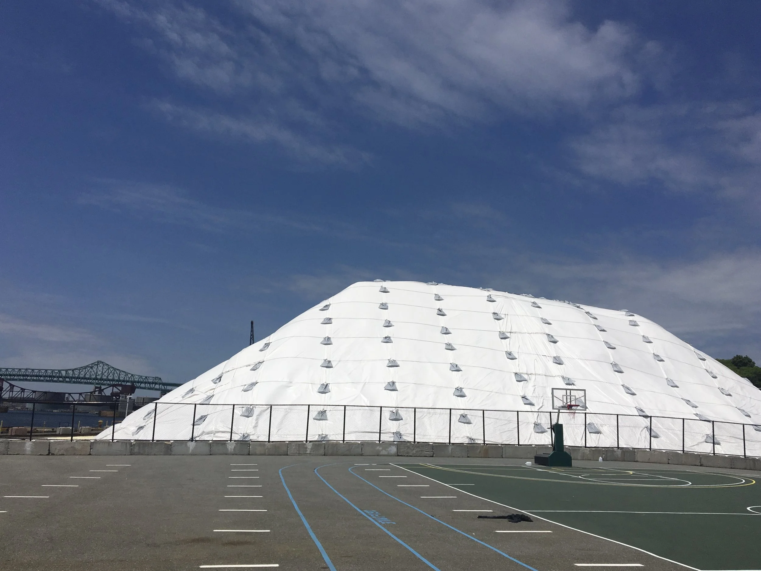 Much of the infrastructure supporting the salt cycle is hidden. Every winter in Boston, 37,000 tons of road salt is tucked away into eight storage areas across the city. And when it’s not hidden, it can be controversial. The Eastern Minerals salt pile in the adjacent city of Chelsea, which supplies salt to the entire region, has become a landmark that can easily be seen from the highway as it waxes and wanes throughout the year. Chelsea is the smallest city in Massachusetts but serves as a depot for the region’s oil, gas, and produce, exposing its population—nearly half foreign-born, and 20% living in poverty—to industrial air and water pollution. So the salt pile has been both a critical support to the region and a bane to an already-burdened neighborhood.